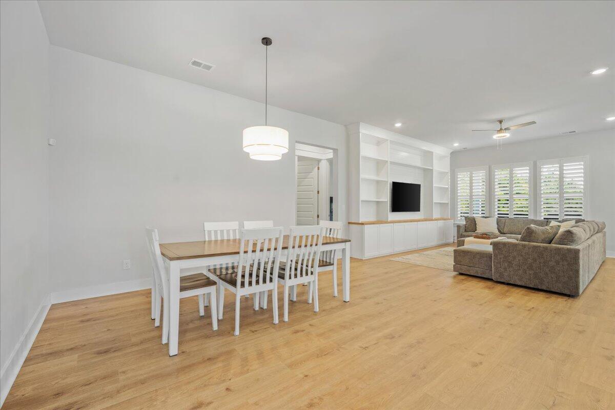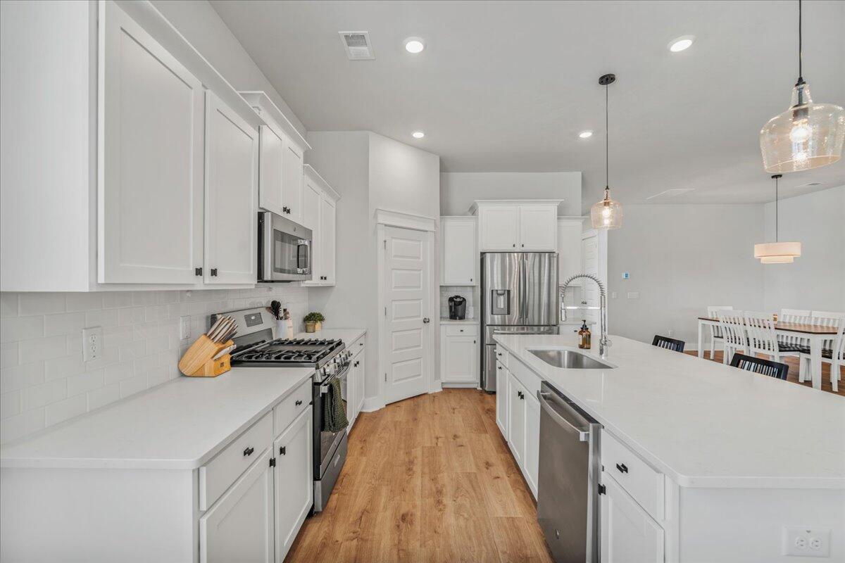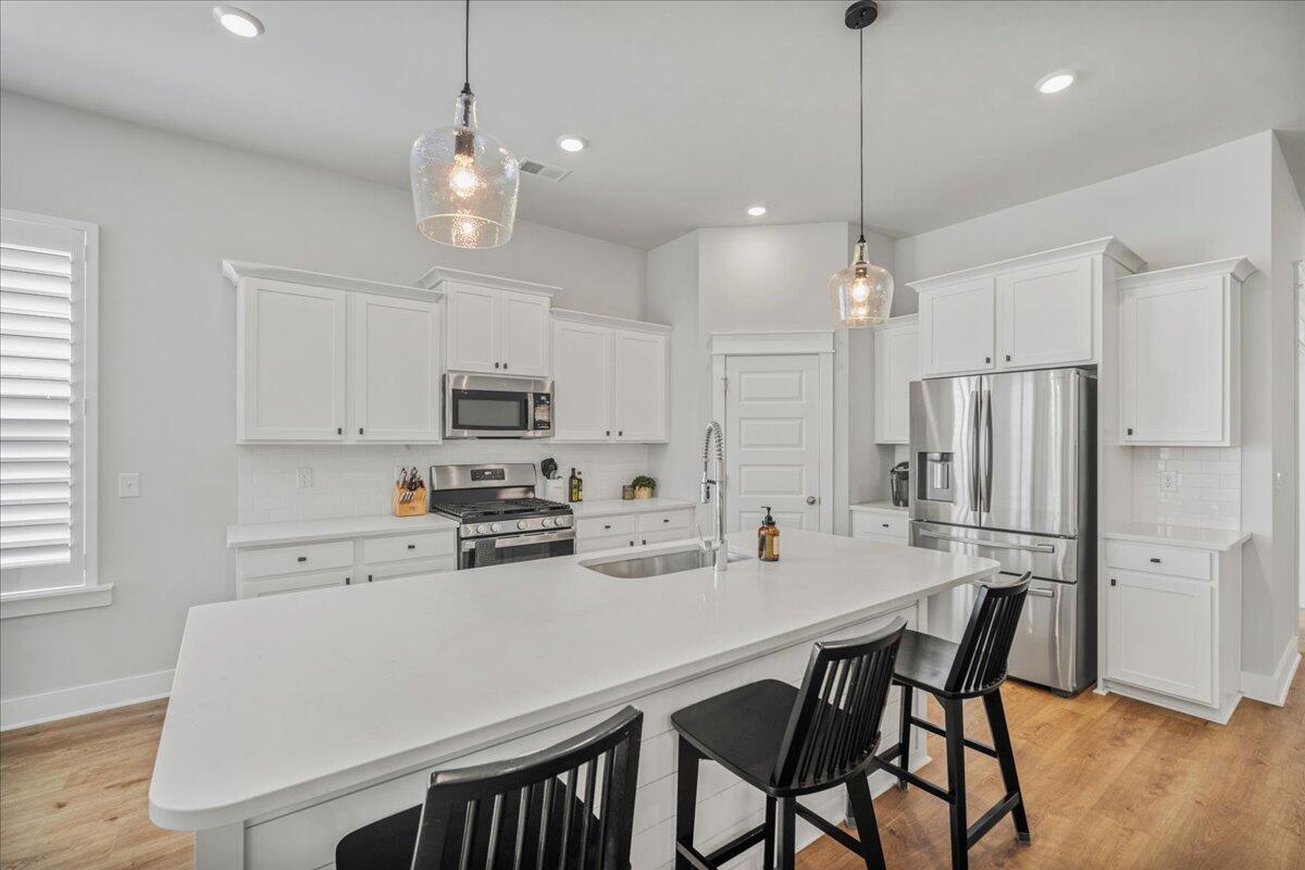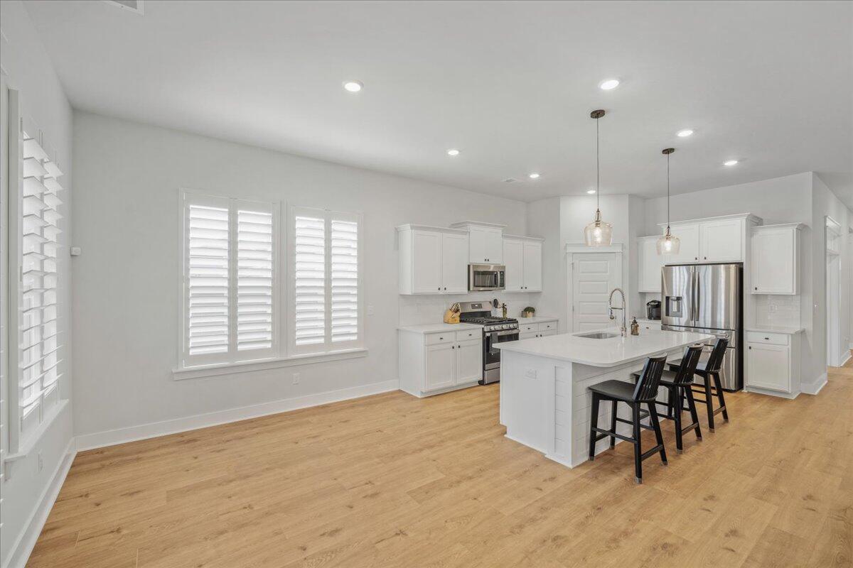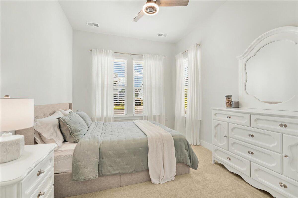 Walking distance to the brand NEW amenity center and agrihood! Welcome to your coastal oasis nestled within the beautiful community of Carnes Crossroads with hardi-plank siding. This open and spacious home is better than new with its array of upgrades throughout. While all the living space is located on the main level, there is also a 2nd level highlighting the 4th bedroom and a full bath providing many options for guest space, work space or a private nursery.The Montgomery floorplan invites you into a spacious, light-filled environment, ideal for hosting gatherings or enjoying quiet relaxation. Featuring 4 bedrooms, and 4 full bathrooms this home offers comfort and style at every turn. Each detail enhances the home's coastal allure from the expansive 10-foot ceilingsto the bright white and sunny chef's kitchen. A nice sized walk-in pantry, large island and plenty of counter top space around the eat-in kitchen provide enough room for entertaining and cooking.