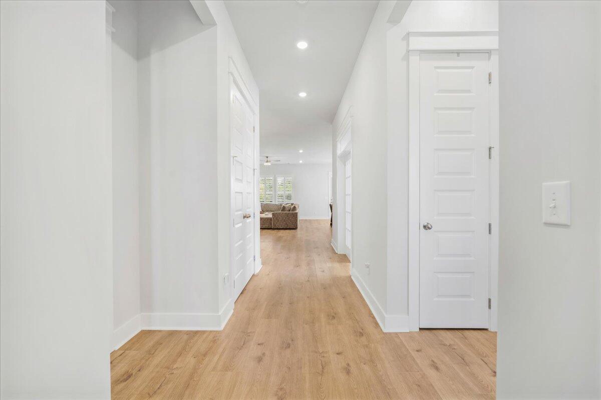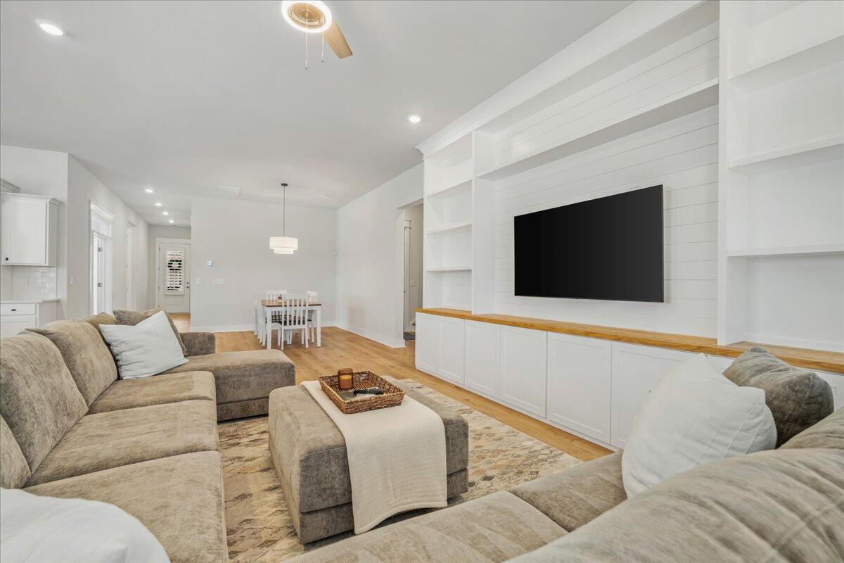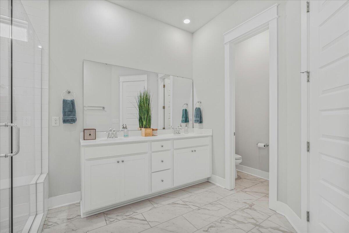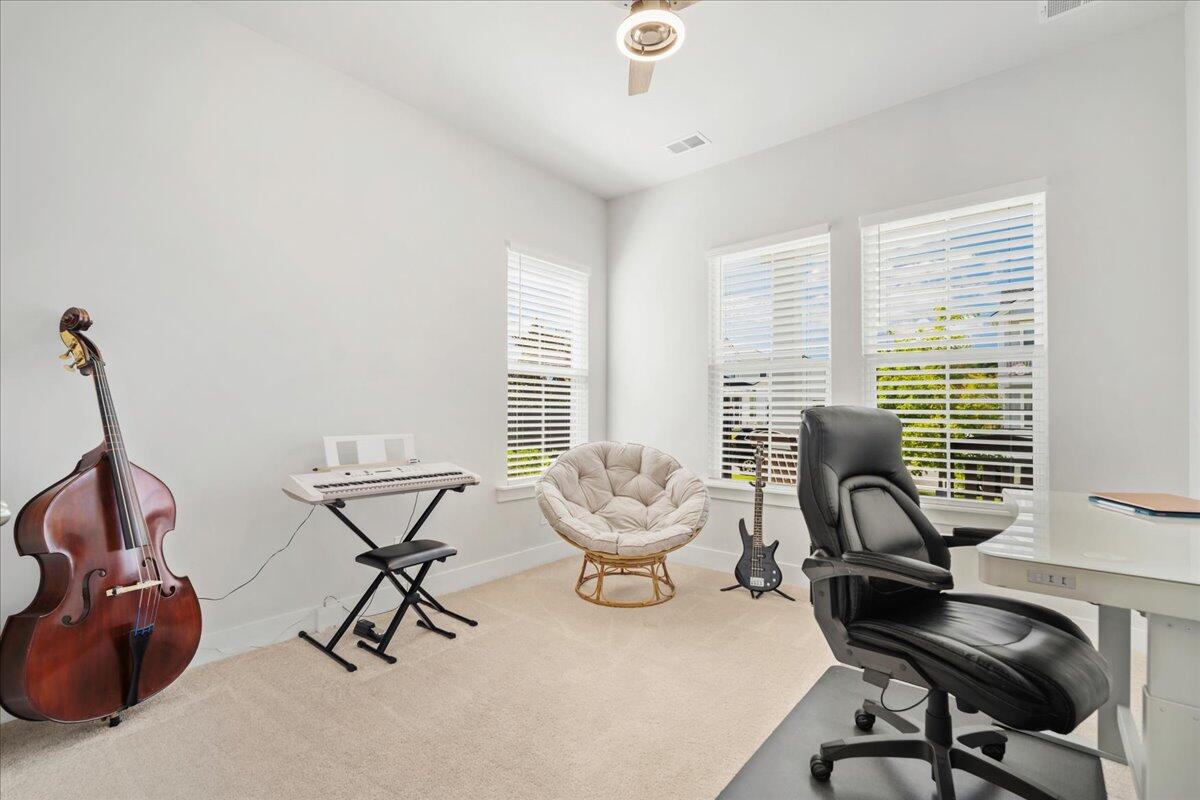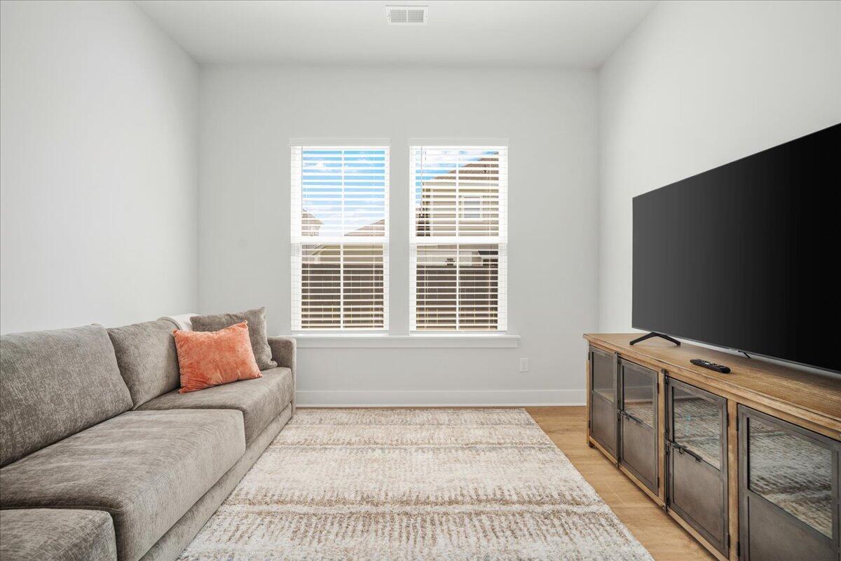 Walking distance to the brand NEW amenity center and agrihood! Welcome to your coastal oasis nestled within the beautiful community of Carnes Crossroads with hardi-plank siding. This open and spacious home is better than new with its array of upgrades throughout. While all the living space is located on the main level, there is also a 2nd level highlighting the 4th bedroom and a full bath providing many options for guest space, work space or a private nursery.The Montgomery floorplan invites you into a spacious, light-filled environment, ideal for hosting gatherings or enjoying quiet relaxation. Featuring 4 bedrooms, and 4 full bathrooms this home offers comfort and style at every turn. Each detail enhances the home's coastal allure from the expansive 10-foot ceilingsto the bright white and sunny chef's kitchen. A nice sized walk-in pantry, large island and plenty of counter top space around the eat-in kitchen provide enough room for entertaining and cooking.