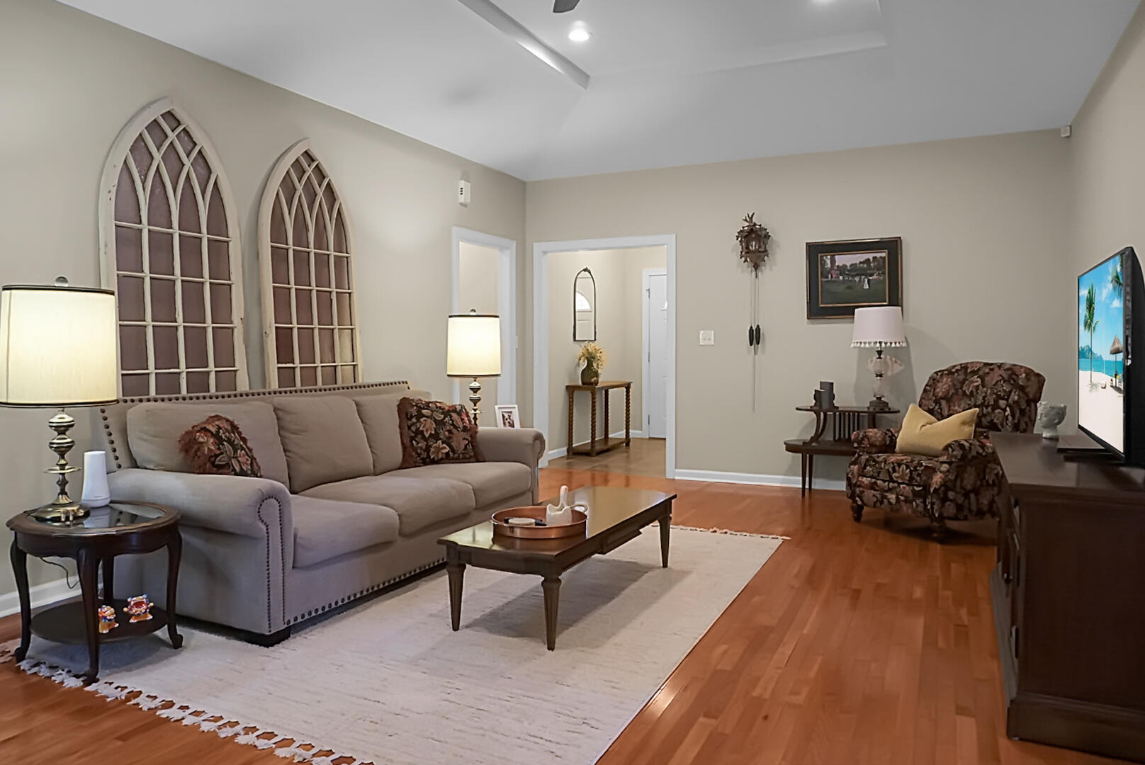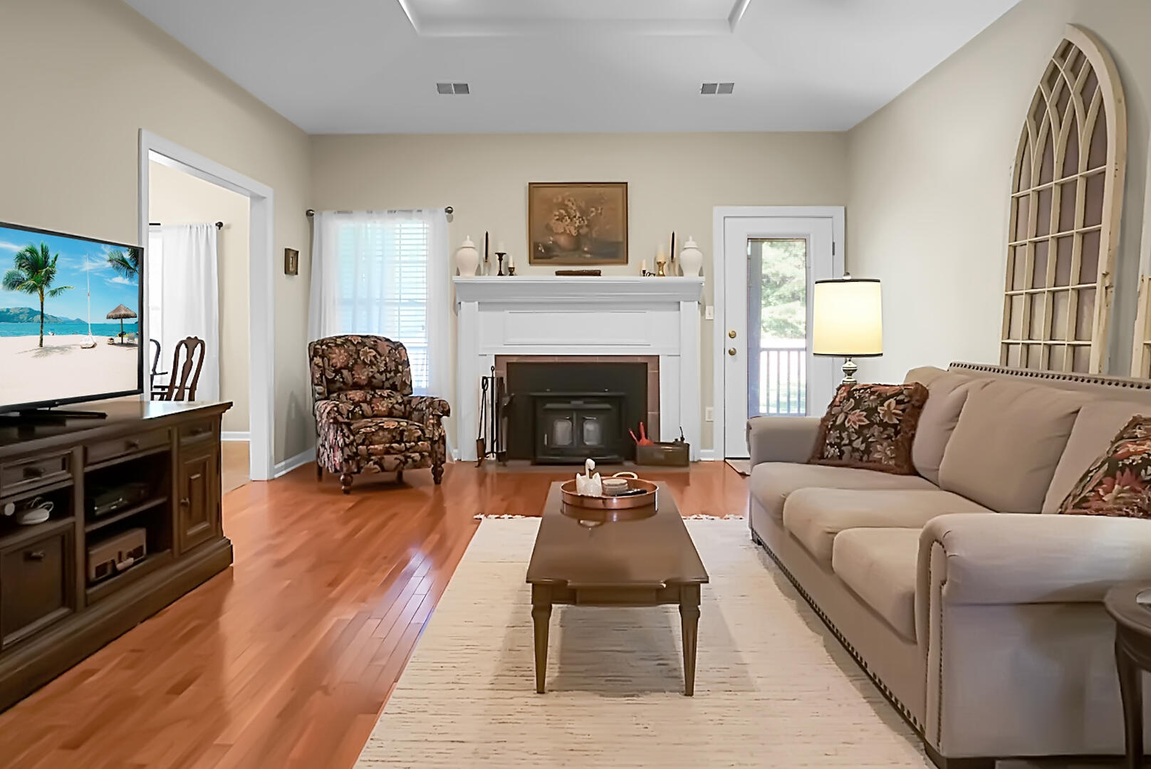 Country Living with Modern Perks - 4 Beds on 2.4 Acres!If you're looking for space, peace, and a place to call home, this one checks all the boxes! Sitting on 2.4 acres in a quiet, rural setting, this home offers 4 bedrooms and 2 baths, with a brand new roof and newly available fiber internet -- so you can enjoy country life without giving up speed online.The primary suite has plenty of room with two walk-in closets, dual vanities, and a private bath. The spacious kitchen features wood cabinetry, tons of storage, and lots of counter space -- perfect for cooking or gathering. You'll love the 9 ft ceilings, especially the tray ceiling in the living room, and the wood-burning fireplace with a stove insert for cozy nights.Floors are hardwood throughout the main spaces, with tile in the kitchen and baths. The hall bathroom even has a jetted tub for extra relaxation.