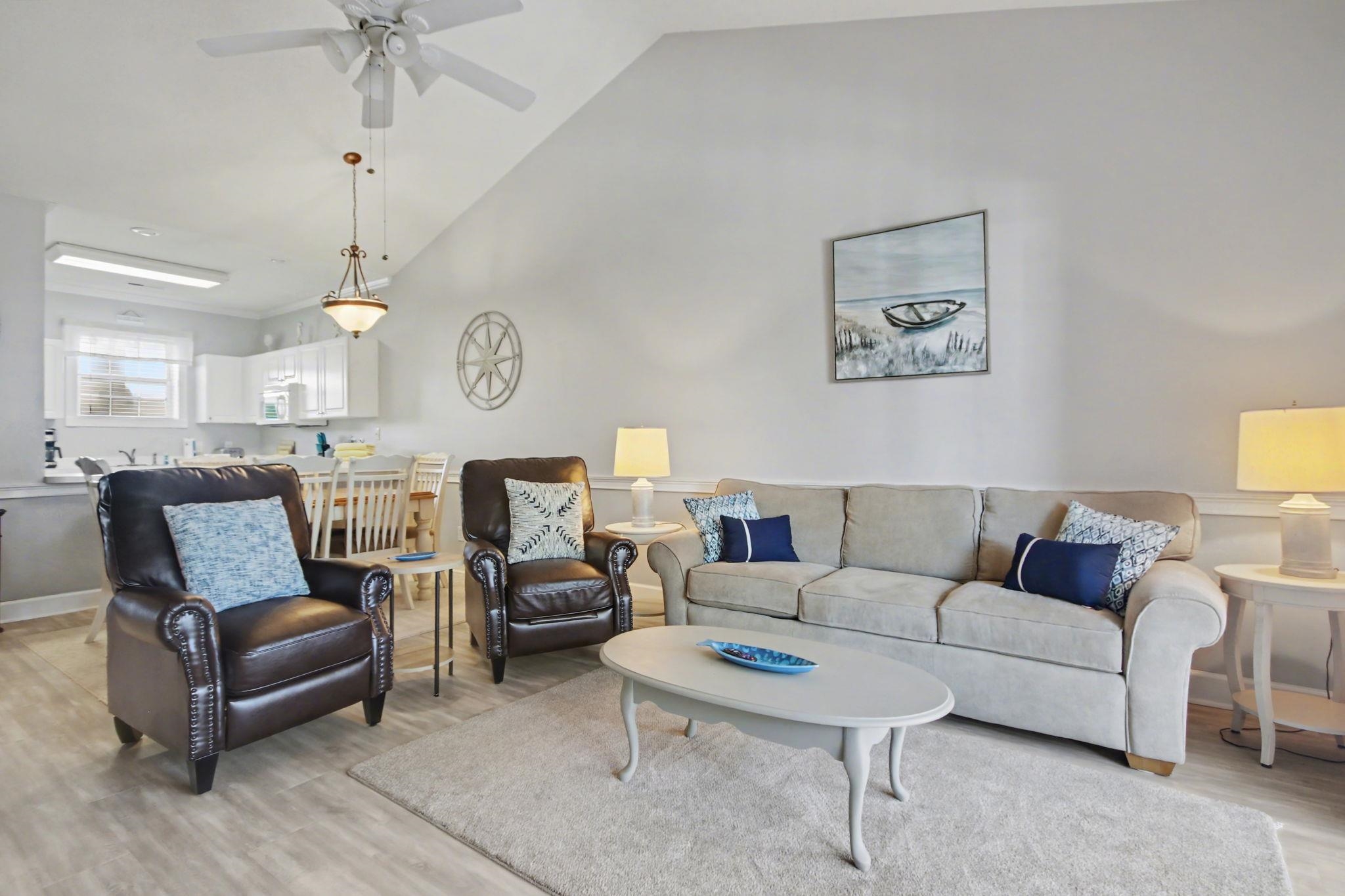 Experience refined coastal living in this impeccably updated, fully furnished condo at 682 Riverwalk Drive, ideally positioned along the Intracoastal Waterway in the heart of Myrtle Beach. Offering low monthly HOA fees, this residence showcases a thoughtfully curated collection of recent upgrades, including a modern HVAC system with WiFi smart thermostat, updated ductwork, hot water heater, and premium Pergo LVT flooring throughout the main living areas, complemented by plush carpeting in the bedrooms. Fresh, like-new paint and Kohler toilets elevate the baths, while the kitchen is tastefully appointed with a dishwasher, garbage disposal, and upgraded faucet. A Pella entry storm door with roll-up screen adds both elegance and functionality. Step onto your private, turnkey balcony and enjoy tranquil mornings overlooking the sparkling pool and manicured golf course. A locked exterior storage space provides convenient room for beach essentials and golf equipment. Riverwalk offers a true resort-style lifestyle with two outdoor pools, an indoor pool, outdoor grilling areas, a fitness center, and a private resident boat ramp with direct access to the Intracoastal Waterway. Perfectly located just minutes from Myrtle Beach International Airport, Broadway at the Beach, the Myrtle Beach Boardwalk, Ripley's Aquarium, championship golf courses, premier dining, shopping, and entertainment--with the Atlantic Ocean beaches only a short drive away--this exceptional condo presents an ideal opportunity as a primary residence, upscale vacation retreat, or income-producing investment in one of the Grand Strand's most desirable and centrally located communities.
